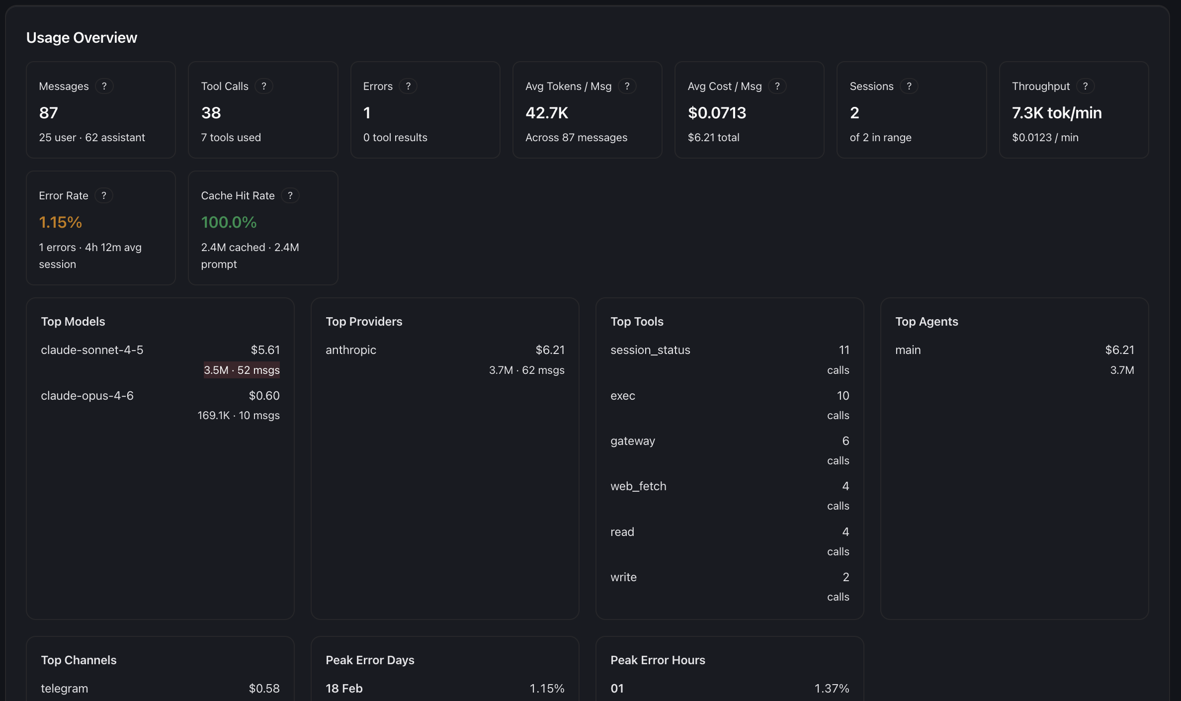 After that I asked my claw to change the model and it tried to do it itself by modifying the ~/.openclaw/openclaw.json file and then restarting itself, but it totally failed at that and broke itself. So I had to then ssh in and edit the file myself and try to work out what it changed, and then managed to fix it with the help of an external claude session and managed to get it working again. Bit of a pain. I guess this is in the nature of the beast, it is prompted and encouraged via the agents.md file to go heavy with no restraints.